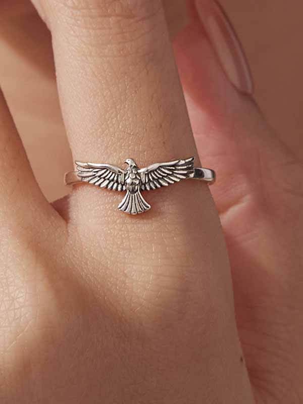 Antique Carved Eagle Adjustable Sterling Silver Ring (Unisex)