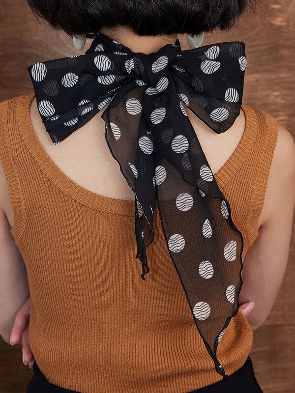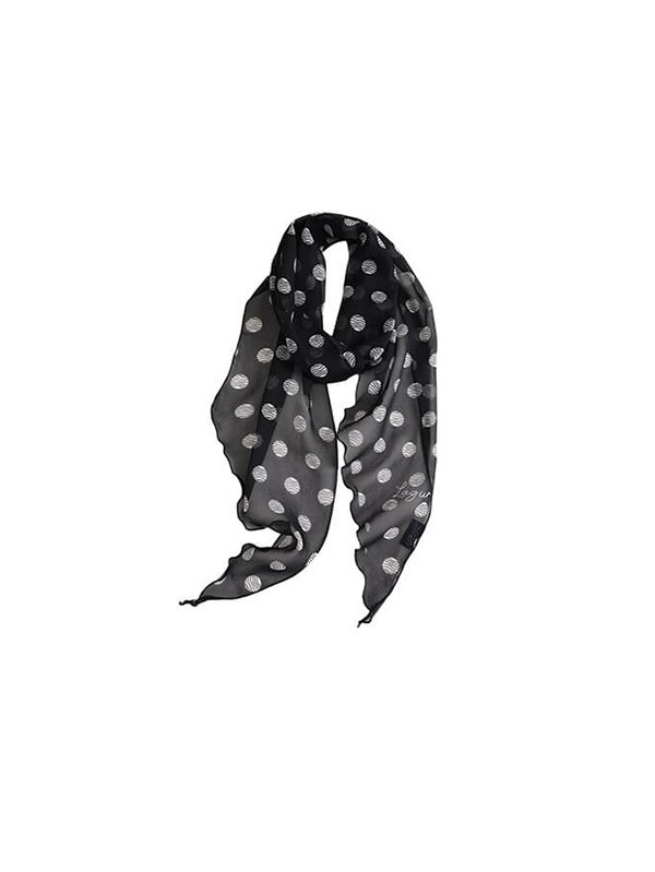 Black Polka Dot 100% Silk Long Scarf