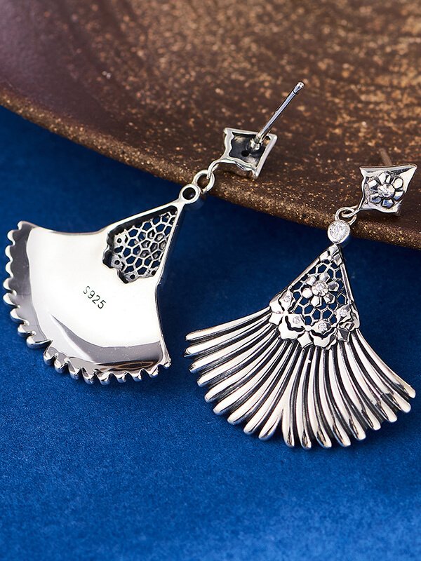 Vintage Hollow-Out Fan-Shaped Zirconia Inlaid S925 Sterling Silver Earrings Vintage Hollow-Out Fan-Shaped Zirconia Inlaid S925 Sterling Silver Earrings