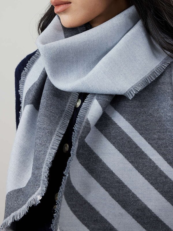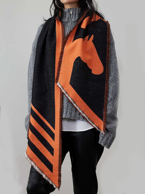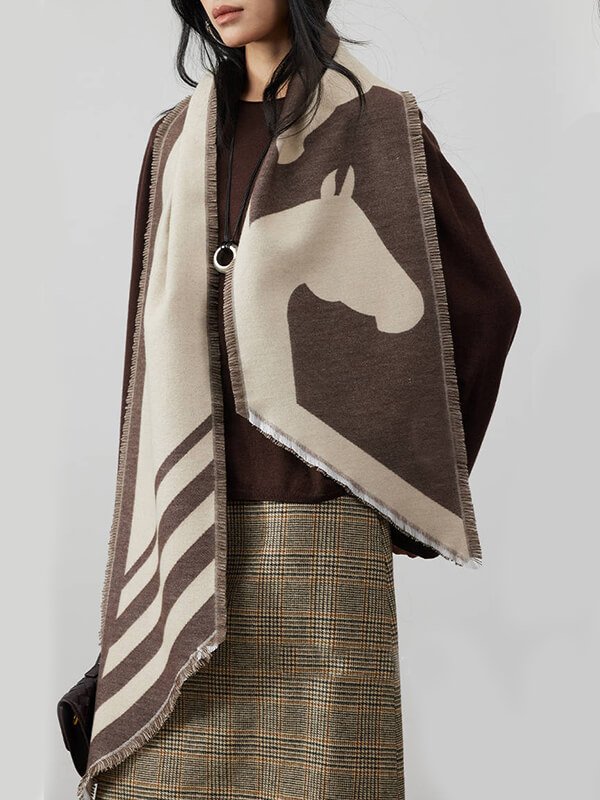 Double-Sided Worsted Wool Scarf with Dual Horse Head Design