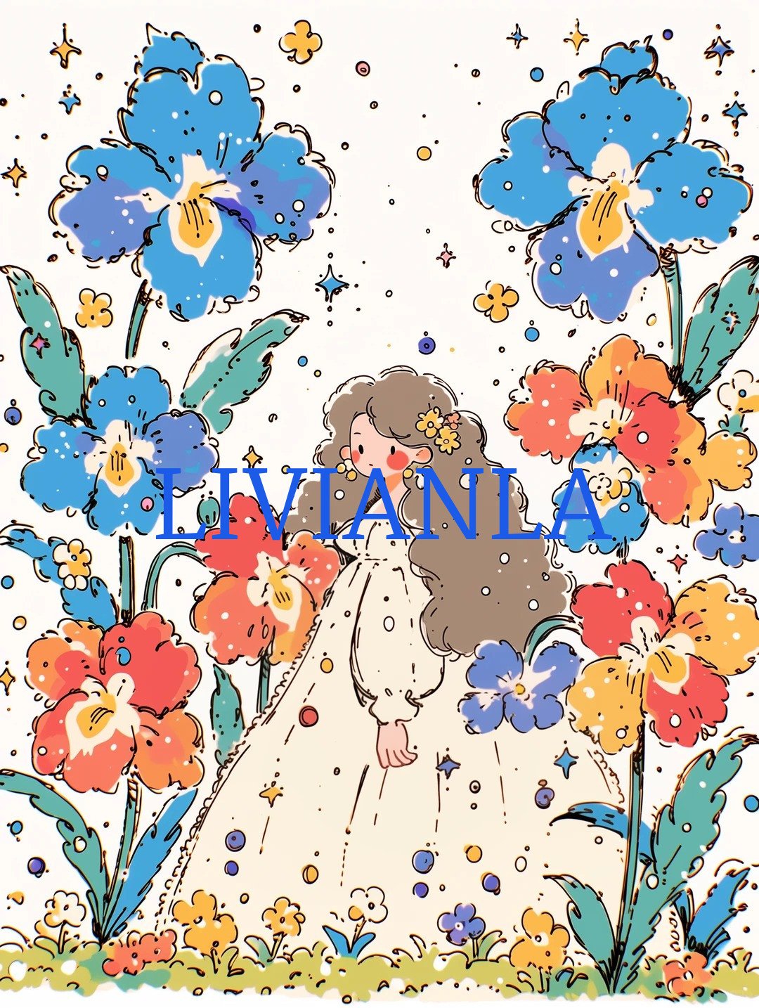 Girl in a Sea of Flowers Perler Bead Pattern – Flower Field Fuse Bead Design 3 images