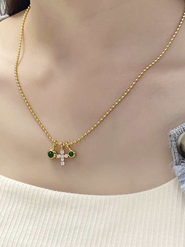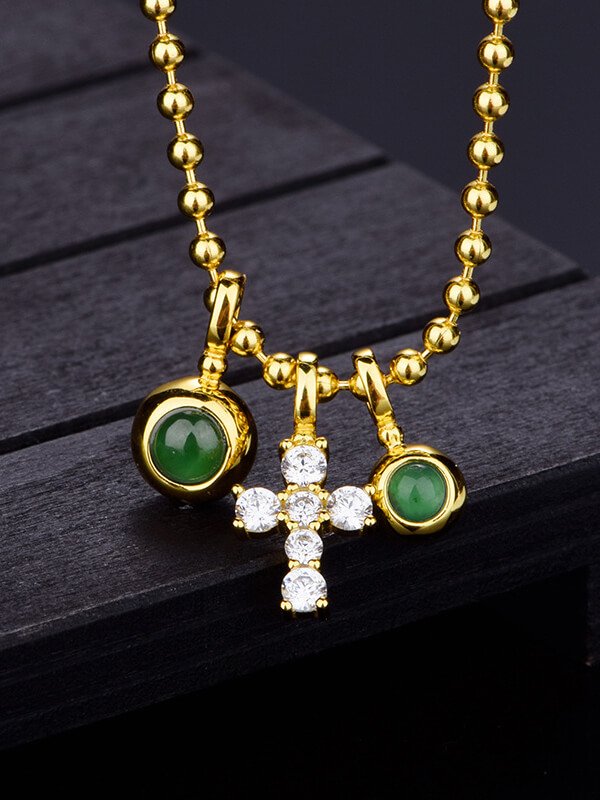 Jade Cross Zirconia Silver Necklace Jade Cross Zirconia Silver Necklace