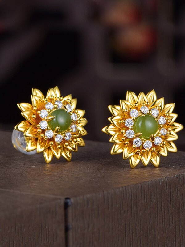 Jade Zirconia Daisy Sliver Stud Earrings