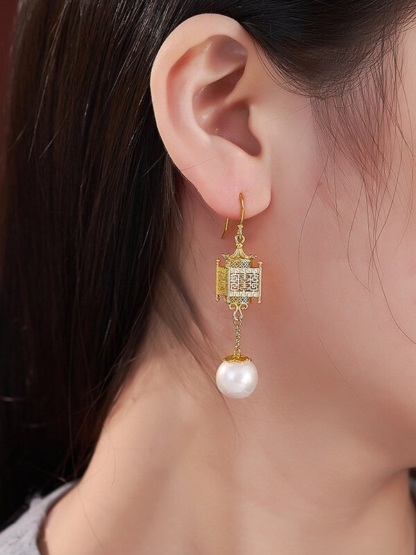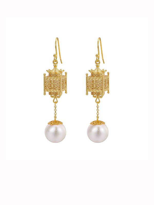 Lantern-Shaped Freshwater Pearl S925 Sterling Silver Earrings