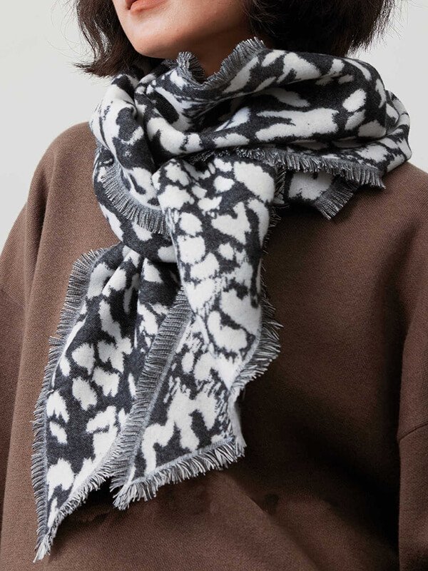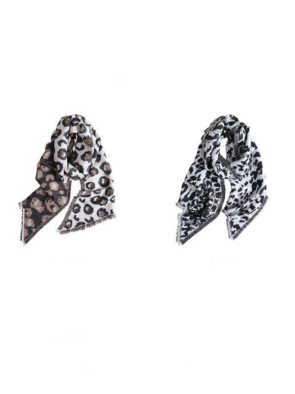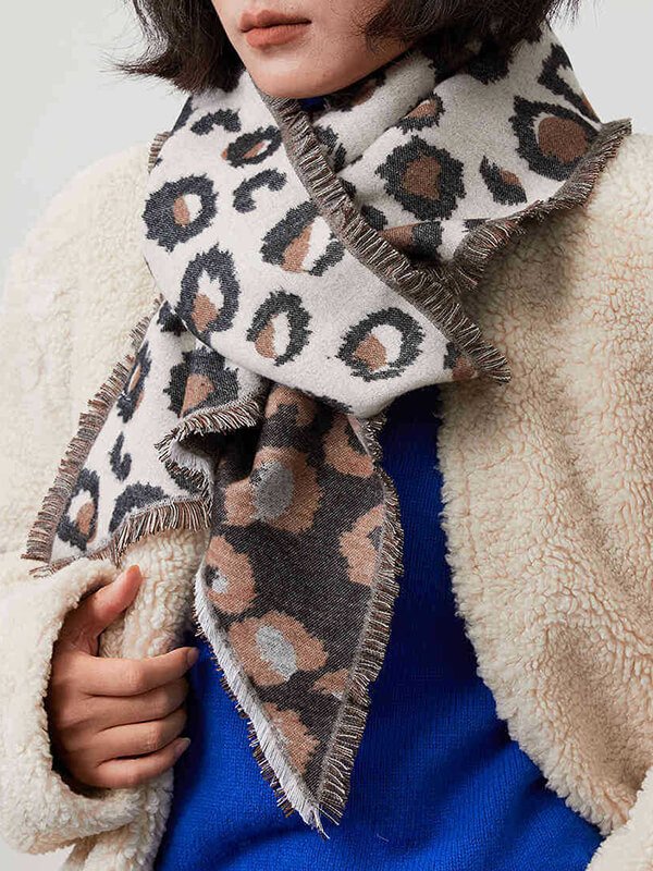 Long Thick Worsted Wool Leopard Print Scarf