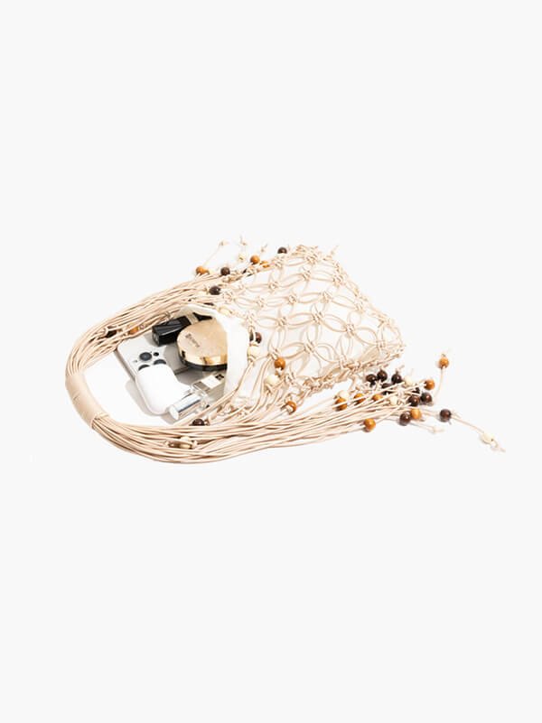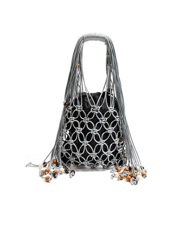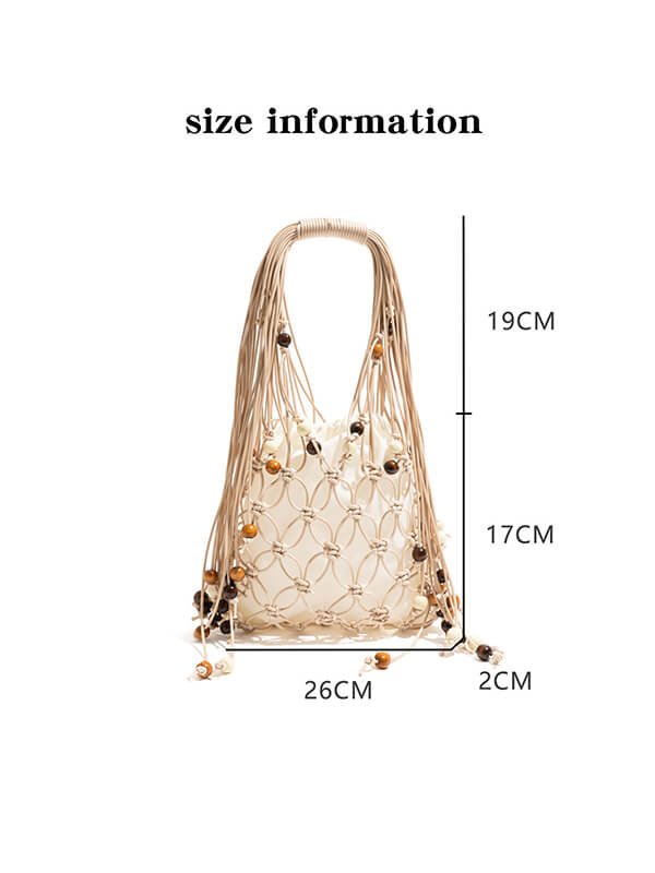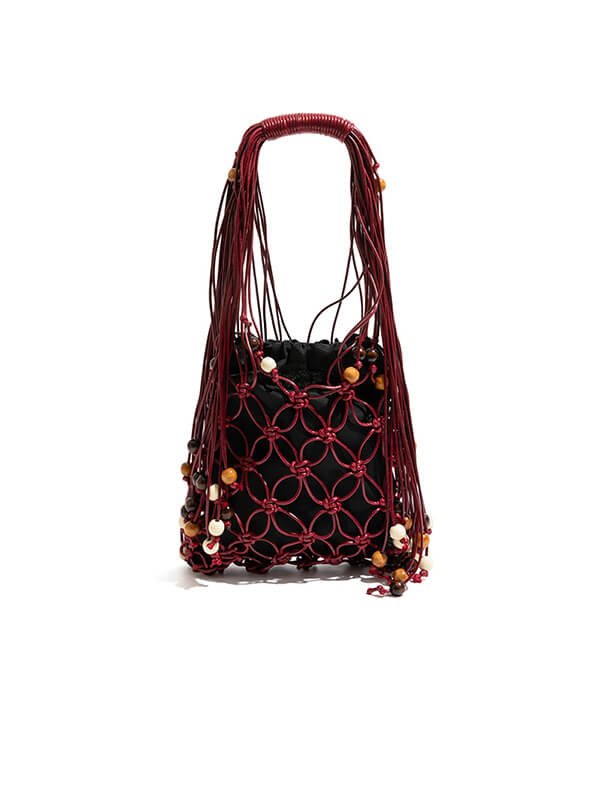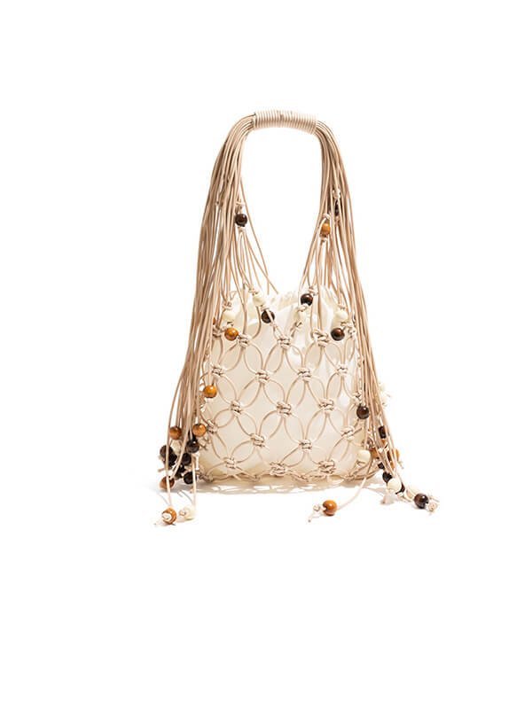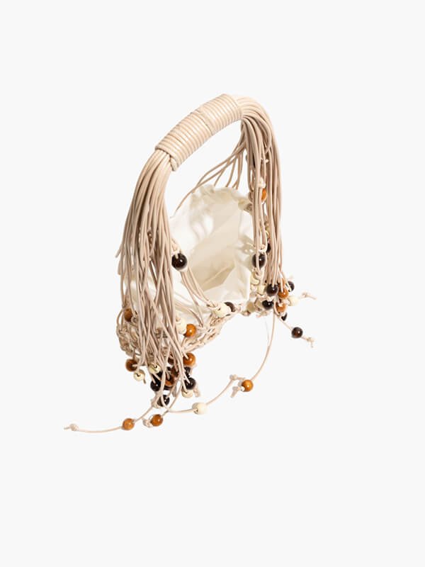 | Material | Cotton and linen fabric; beads; canvas lining. |