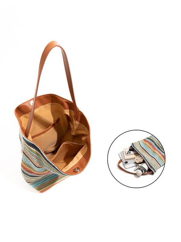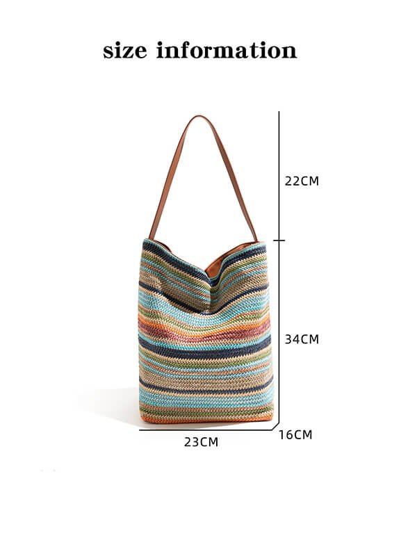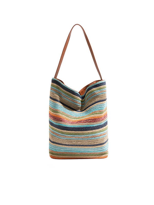Minimalist Rainbow Striped Bucket Bag