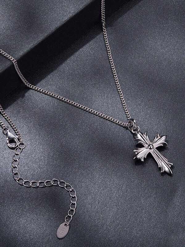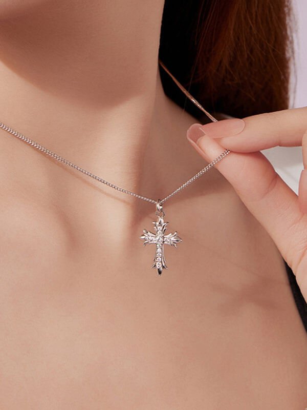 Moissanite Cross Pendant Necklace in Sterling Silver