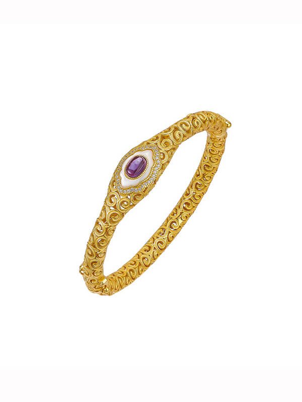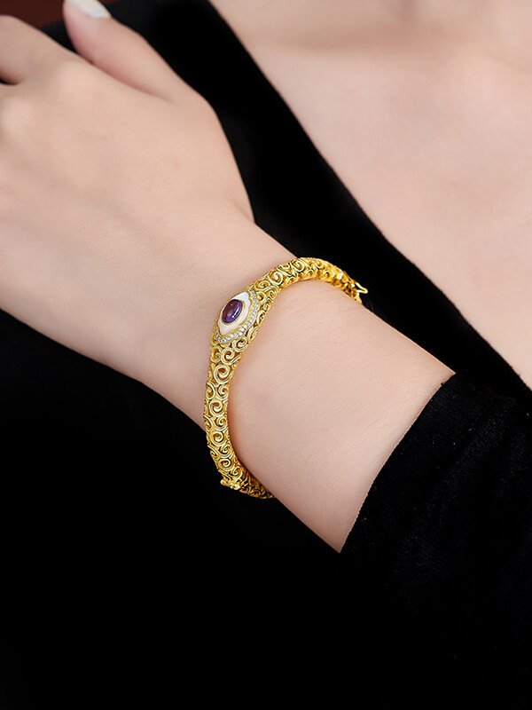 Openwork Tribal Amethyst Sterling Silver Bracelet