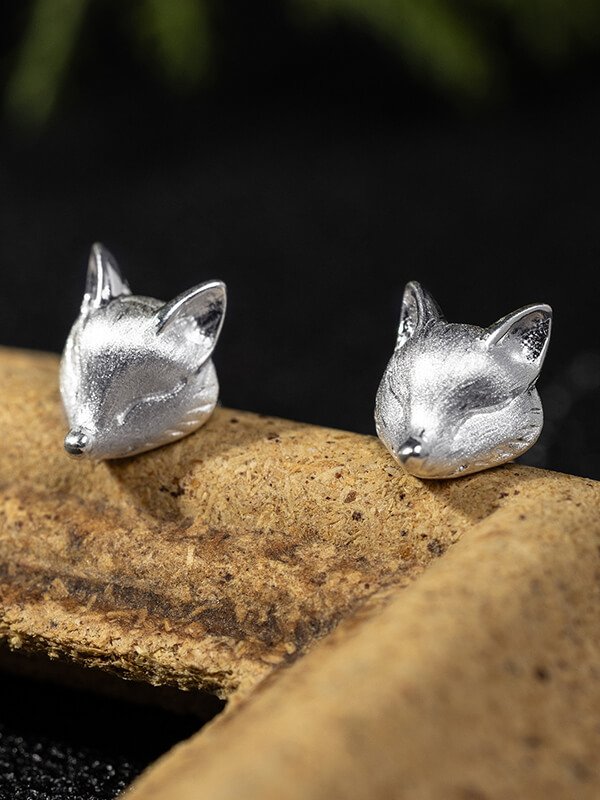 Original S925 Sterling Silver Brushed Fox Stud Earrings Original S925 Sterling Silver Brushed Fox Stud Earrings