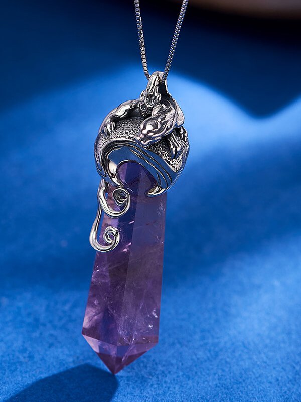 Panther-Shaped Natural Amethyst Pendant in Vintage S925 Sterling Silver