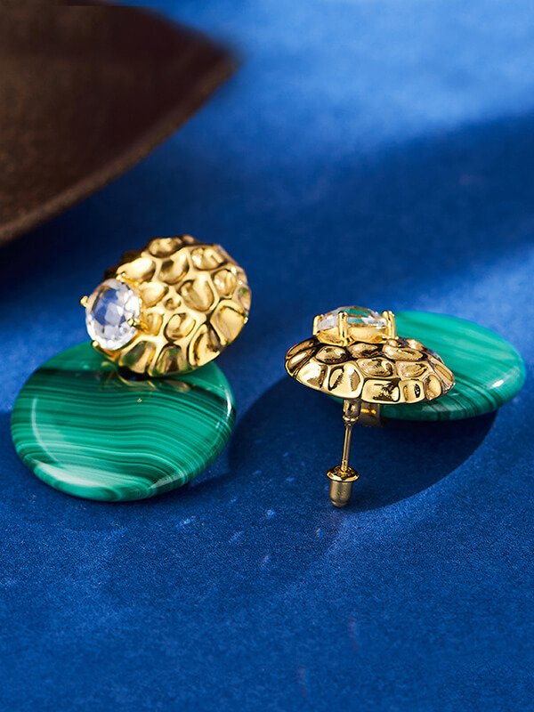 Round Malachite and Rock Crystal Silver Earrings Round Malachite and Rock Crystal Silver Earrings