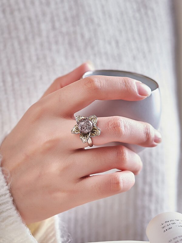 S925 Silver Flower Phantom Quartz Ring S925 Silver Flower Phantom Quartz Ring