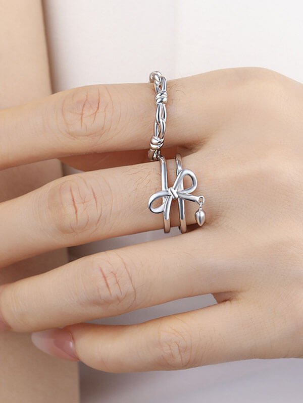 S925 Silver Heart Bell Bow Ring S925 Silver Heart Bell Bow Ring