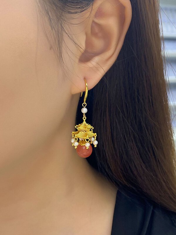 S925 Silver Inlaid Agate Pearl Earrings S925 Silver Inlaid Agate Pearl Earrings