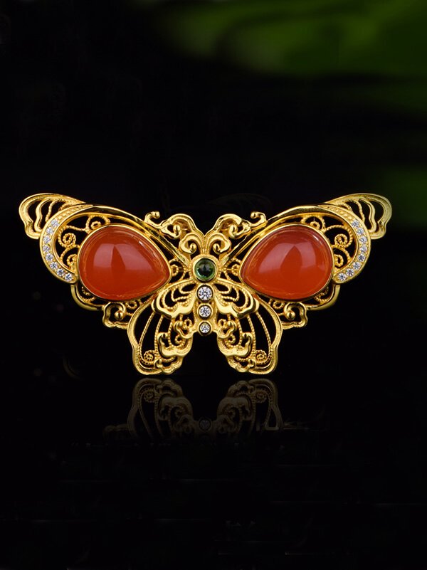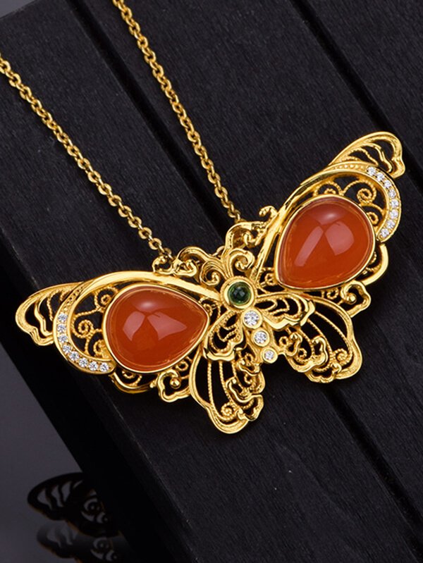 S925 Silver Red Agate Butterfly Pendant  Brooch S925 Silver Red Agate Butterfly Pendant Brooch