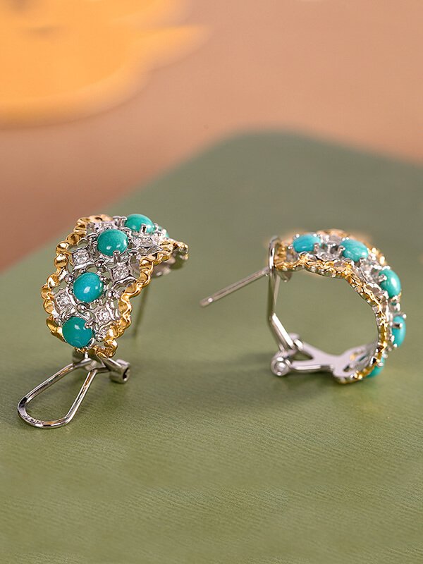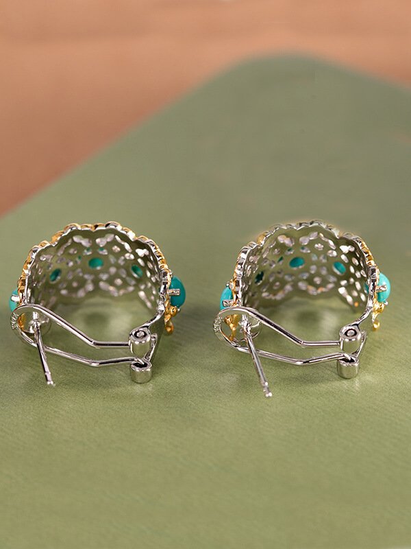S925 Silver Turquoise Inlaid Ring Ear Cuff