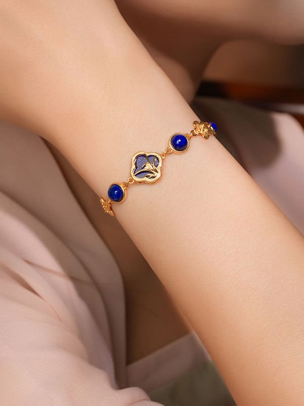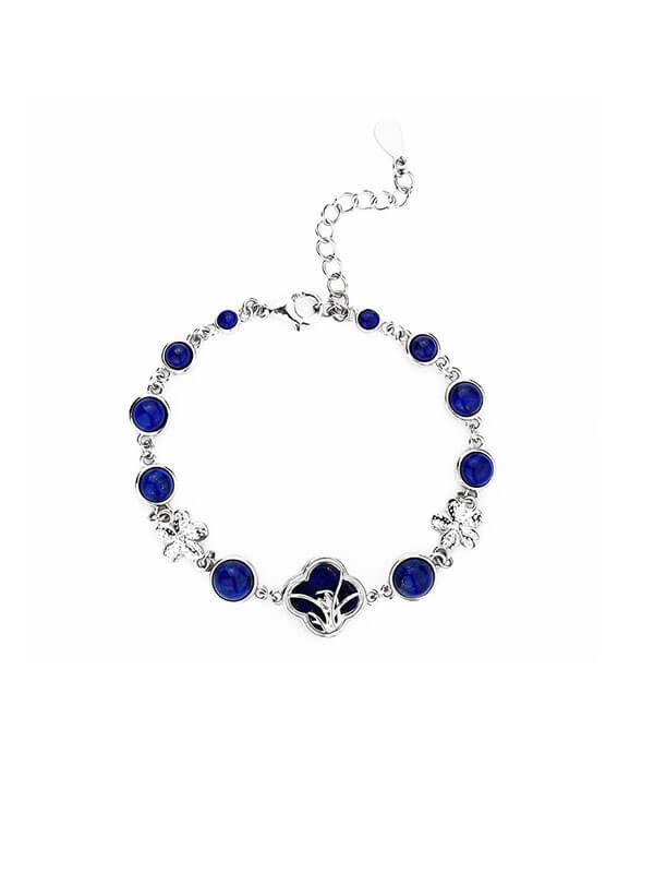 S925 Sterling Silver Bracelet with Natural Lapis Lazuli Four-Leaf Clover S925 Sterling Silver Bracelet with Natural Lapis Lazuli Four-Leaf Clover