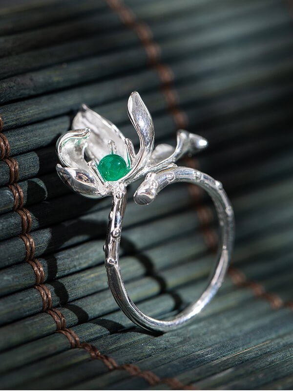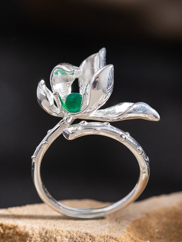 S925 Sterling Silver Chrysoprase Lotus Ring S925 Sterling Silver Chrysoprase Lotus Ring