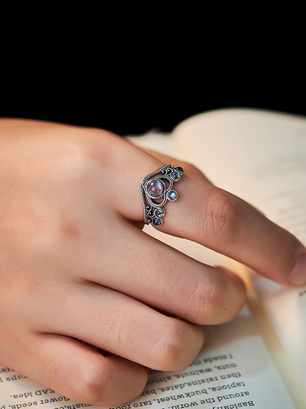 S925 Sterling Silver Crown Ring with Moonstone S925 Sterling Silver Crown Ring with Moonstone
