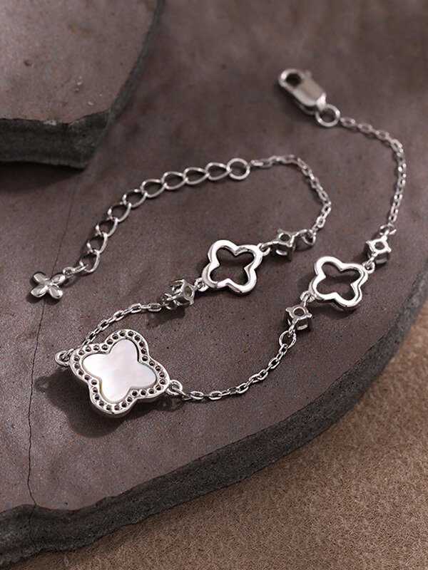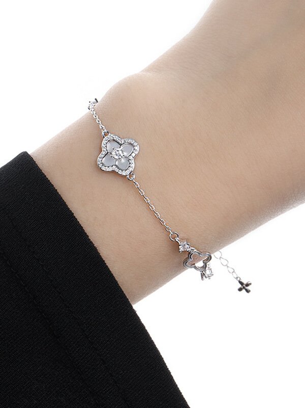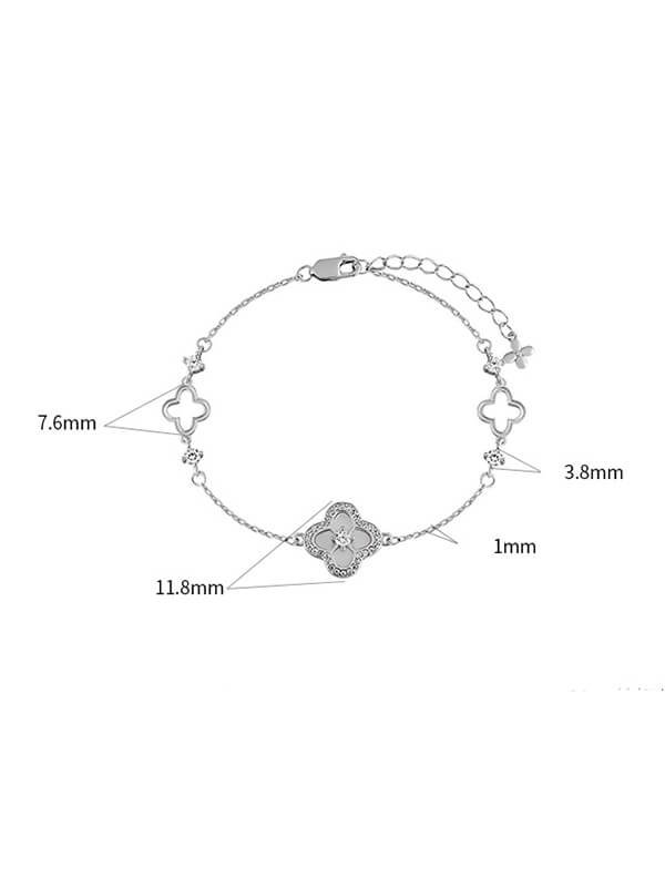 S925 Sterling Silver Diamond-Accented Four-Leaf Clover Bracelet S925 Sterling Silver Diamond-Accented Four-Leaf Clover Bracelet