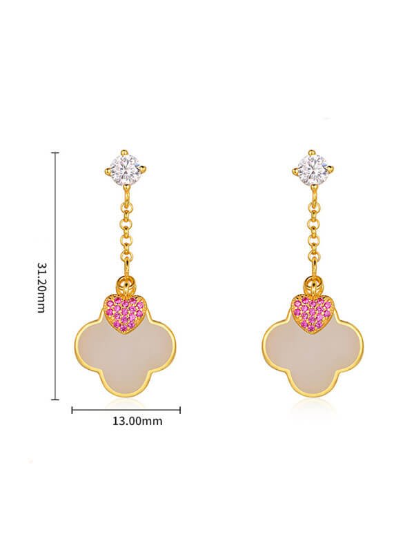 S925 Sterling Silver Earrings with Natural Hetian Jade Clover S925 Sterling Silver Earrings with Natural Hetian Jade Clover