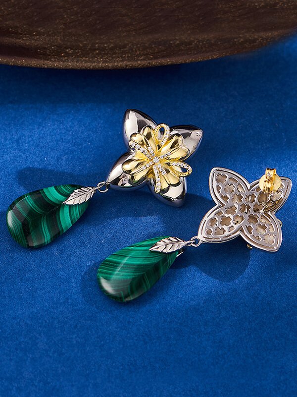 S925 Sterling Silver Floral Teardrop Malachite Dangle Earrings S925 Sterling Silver Floral Teardrop Malachite Dangle Earrings