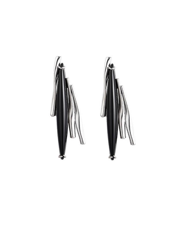 S925 Sterling Silver Irregular Long Black Onyx Drop Earrings S925 Sterling Silver Irregular Long Black Onyx Drop Earrings