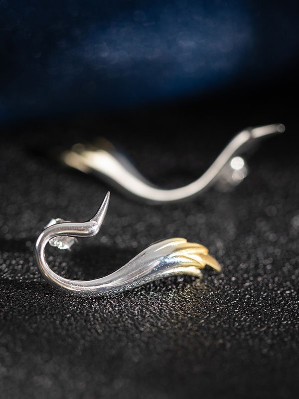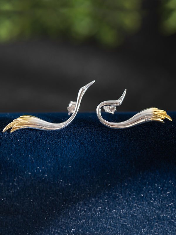 S925 Sterling Silver Minimalist Crane Stud Earrings S925 Sterling Silver Minimalist Crane Stud Earrings