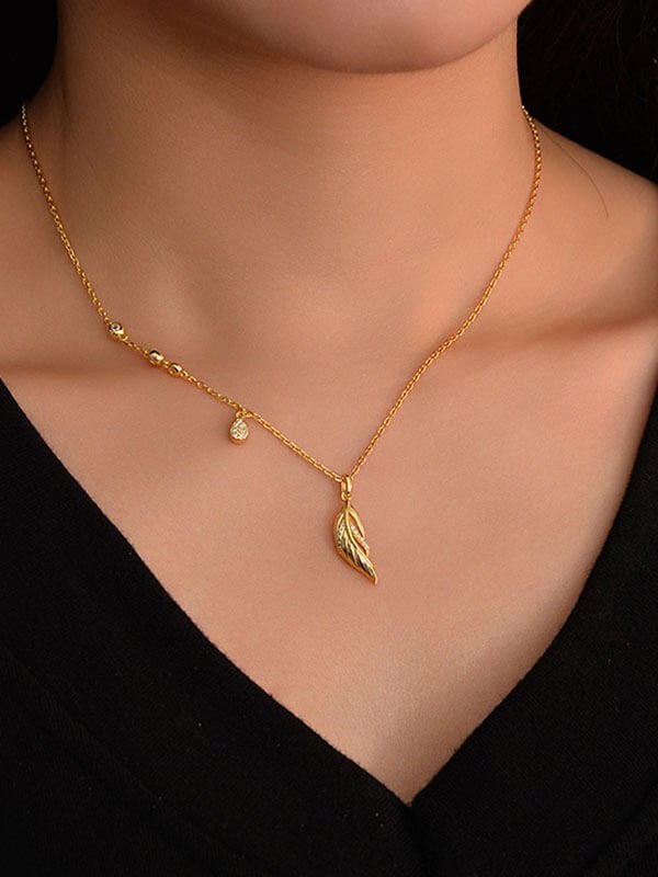 S925 Sterling Silver Minimalist Feather Zircon Necklace S925 Sterling Silver Minimalist Feather Zircon Necklace