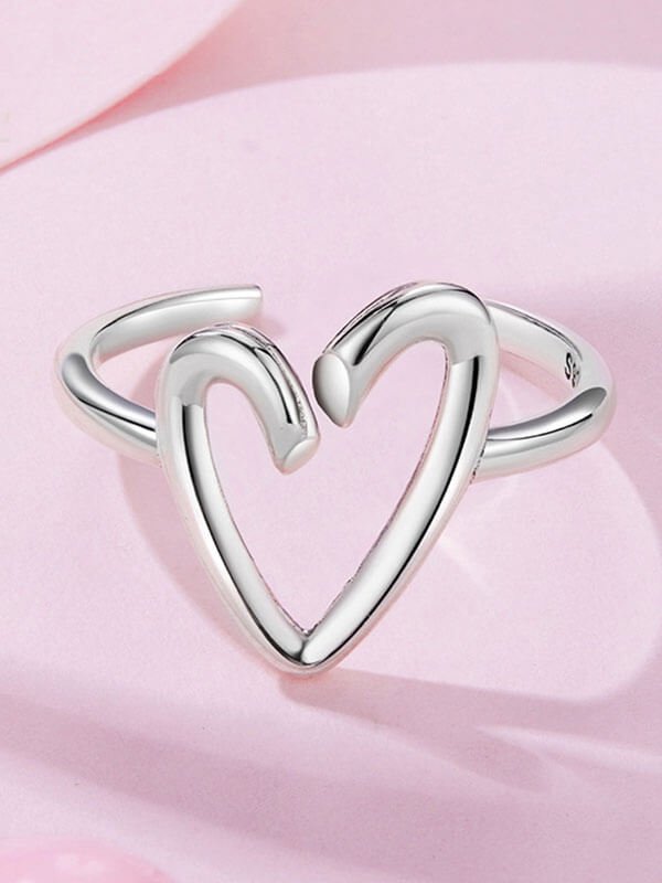 S925 Sterling Silver Minimalist Line Heart Ring S925 Sterling Silver Minimalist Line Heart Ring