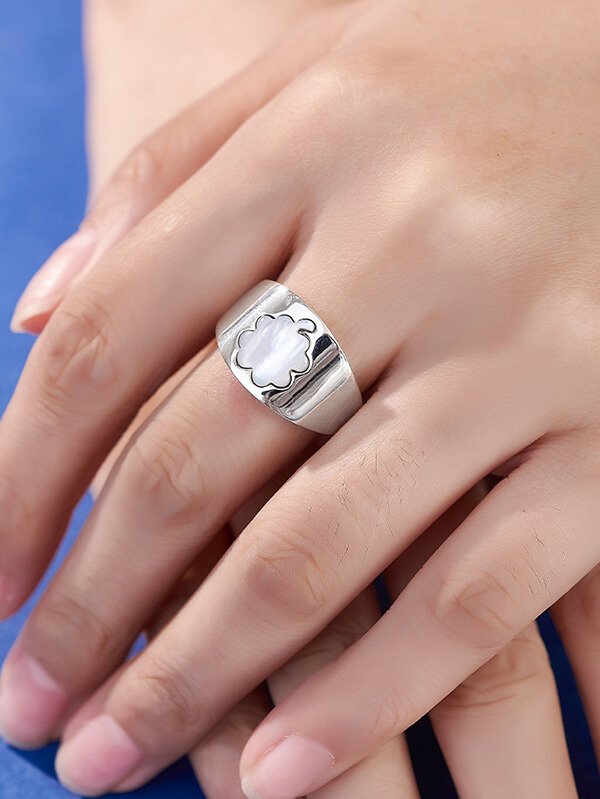 S925 Sterling Silver Ring Inlaid White Shell S925 Sterling Silver Ring Inlaid White Shell