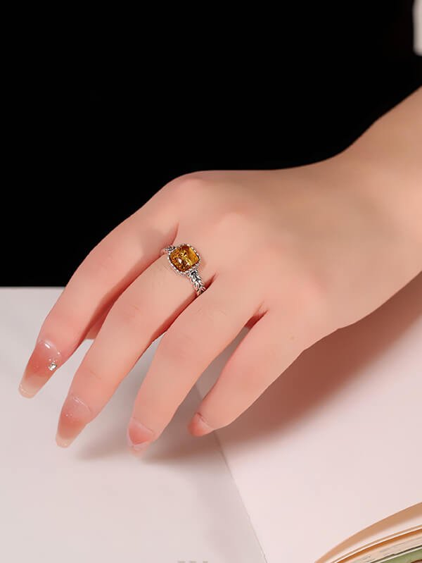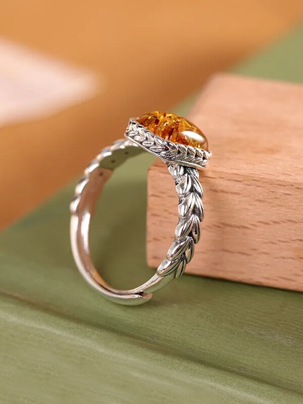 Square-shaped Wheat Sheaf Amber Ring in Sterling Silver Square-shaped Wheat Sheaf Amber Ring in Sterling Silver