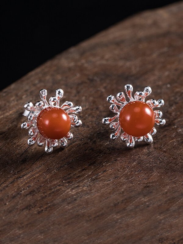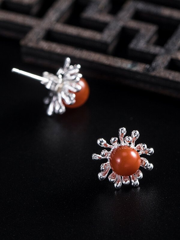 Sterling Silver Agate Flower Bud Ear Studs Sterling Silver Agate Flower Bud Ear Studs