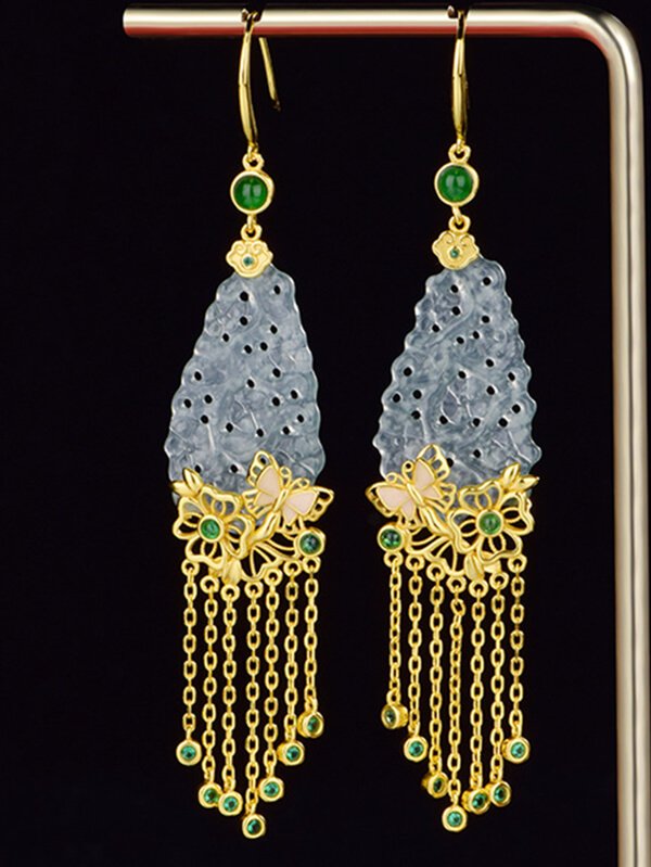 Sterling Silver Jadeite Tassel Earrings with Enamel Sterling Silver Jadeite Tassel Earrings with Enamel