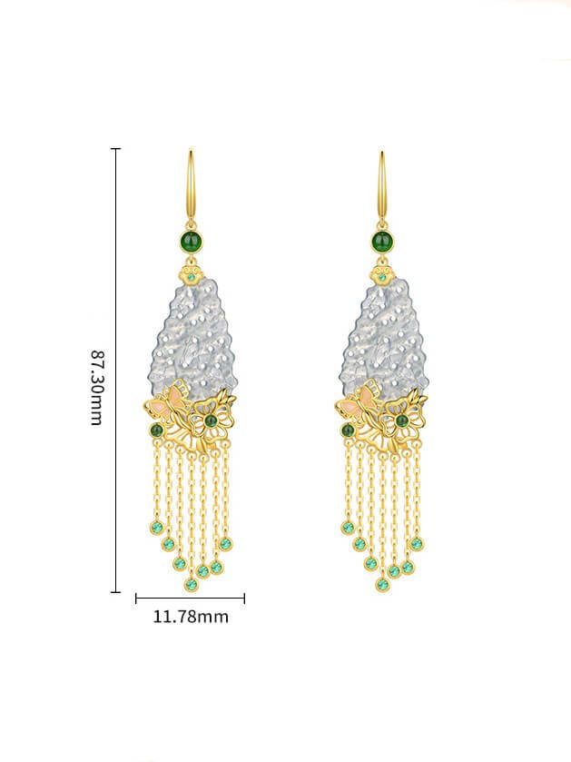 Sterling Silver Jadeite Tassel Earrings with Enamel