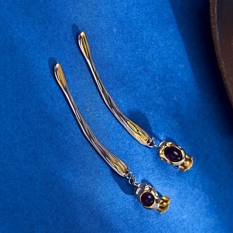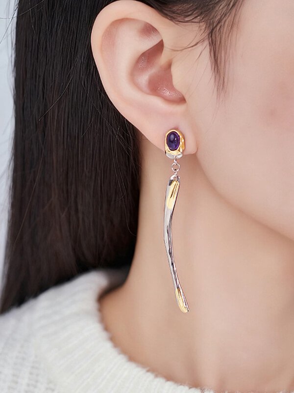 Sterling Silver Long Asymmetric Amethyst Earrings Sterling Silver Long Asymmetric Amethyst Earrings
