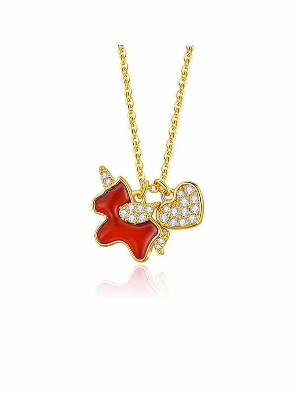 Sterling Silver S925 Pendant with Heart and Pony Design