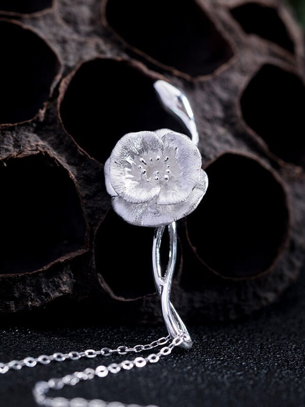 Vintage Corn Poppy Silver Necklace