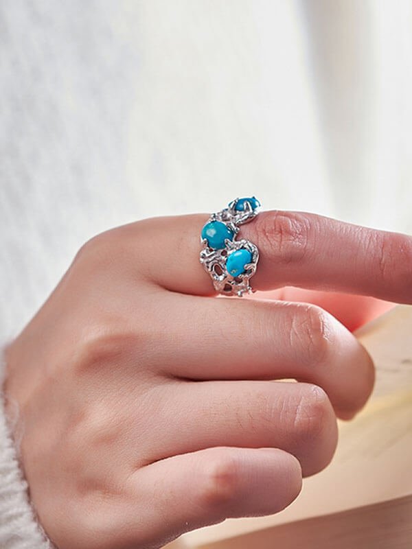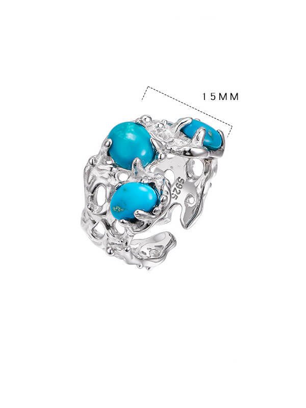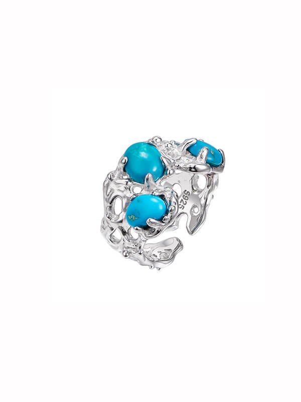 Vintage S925 Sterling Silver Filigree Ring with Raw Turquoise