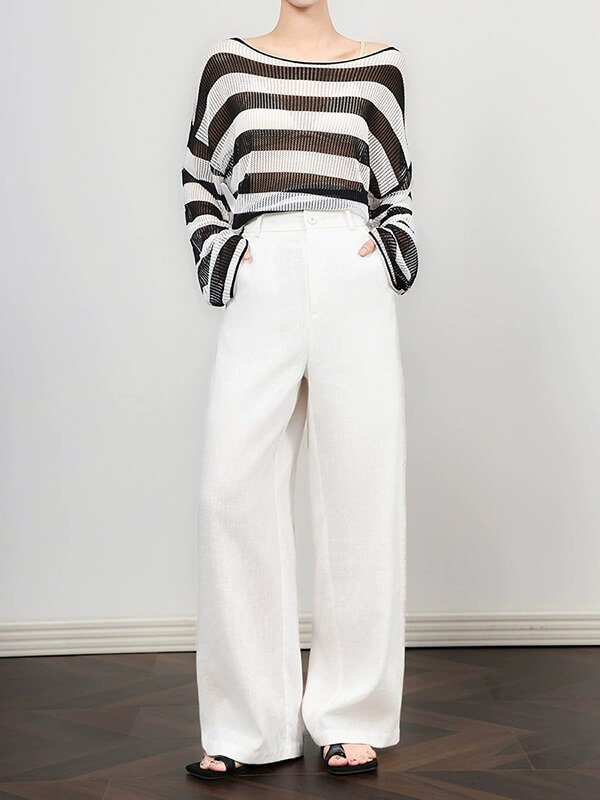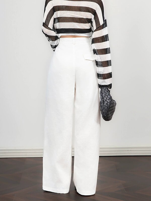 These white linen wide-leg straight pants are perfect for a casual yet stylish look. Made from high-quality linen fabric, they offer comfort and breathability. The wide-leg design provides a relaxed fit, while the straight cut adds a touch of sophistication. Pair them with a tucked-in blouse or a fitted top for a chic ensemble. Ideal for both daytime outings and evening events, these pants are a versatile addition to your wardrobe.